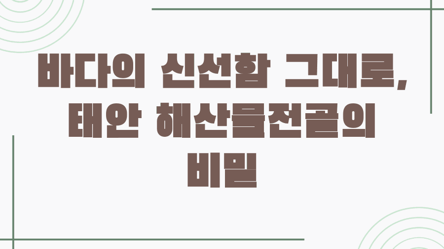 "태안 싱싱 해산물"을 찾는다면, 현지 어시장에서 직접 공수한 재료를 사용하는 식당을 선택하는 것이 좋습니다.