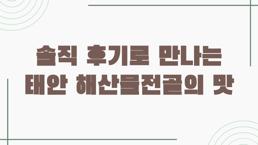"태안 해산물전골 솔직 후기"를 살펴보면, 실제로 방문했던 사람들의 생생한 경험담을 접할 수 있습니다.