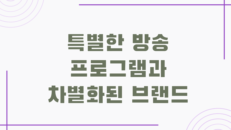 KT알파 쇼핑은 <수정샵(#)>, <최현우의 초이스>, <다이나믹 스타일>, <셀럽의 선택> 등 고객 친화적인 특화 방송 프로그램을 통해 고객들의 다양한 니즈에 대응하고 있습니다.