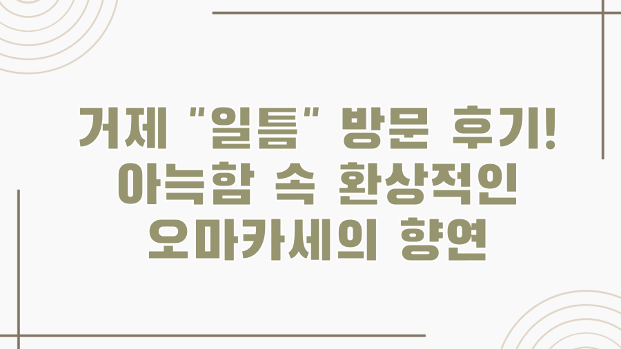 오늘 알아본 "일틈", 어떠셨나요? 거제에서 특별한 미식 경험을 원한다면, "일틈"을 방문하여 잊지 못할 추억을 만들어보세요.